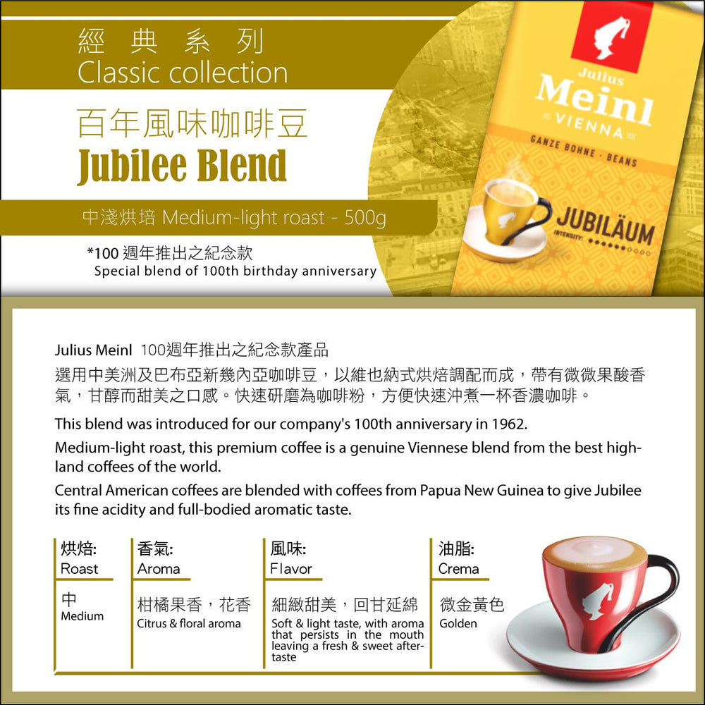 Medium-light roast, this premium coffee is a genuine Viennese blend from the best highland coffees of the world.